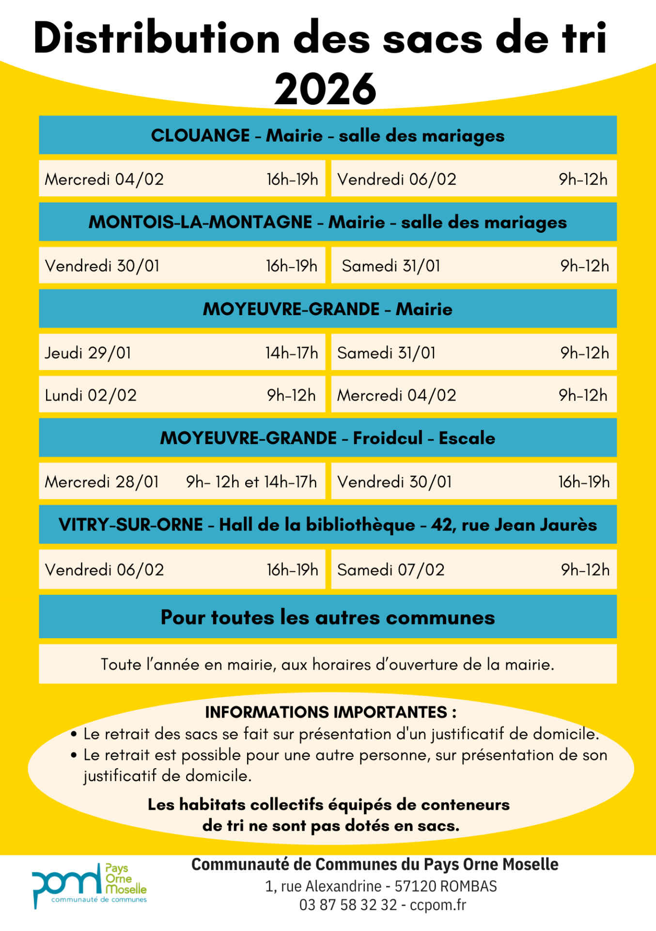 Distribution des sacs de tri 2026