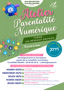Dans le cadre de son programme d’accompagnement à la parentalité numérique, la CCPOM propose de nouveaux ateliers gratuits animés par Claudine Driant, Conseillère Numérique.