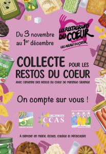 Du 3 novembre au 1er décembre 2025, la commune, en lien avec le C.C.A.S., les CMJ et l’antenne des restos du cœur de Marange-Silvange, organise une collecte alimentaire au profit des restos du cœur.