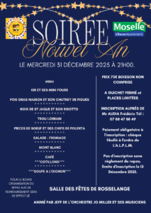 Mercredi 31 Décembre 2025 à partir de 21H00 à la salle des Fêtes du FORT CHABROL à ROSSELANGE