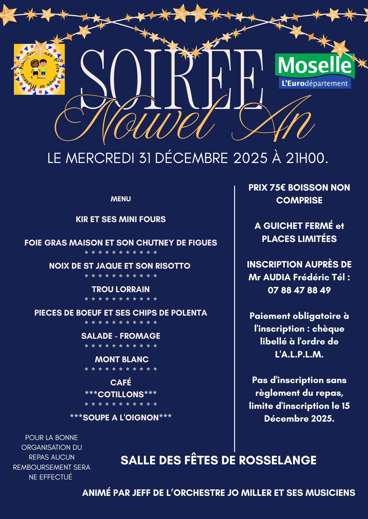 Pas d’inscription sans règlement du repas, limite d’inscription le 15 Décembre 2025.