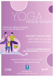 Rejoignez-nous pour un atelier Yoga parents–enfants 𝐚𝐧𝐢𝐦𝐞́ 𝐩𝐚𝐫 𝐌𝐚𝐫𝐢𝐨𝐧 𝐅𝐫𝐚𝐧𝐜̧𝐨𝐢𝐬 (une bulle de douceur).